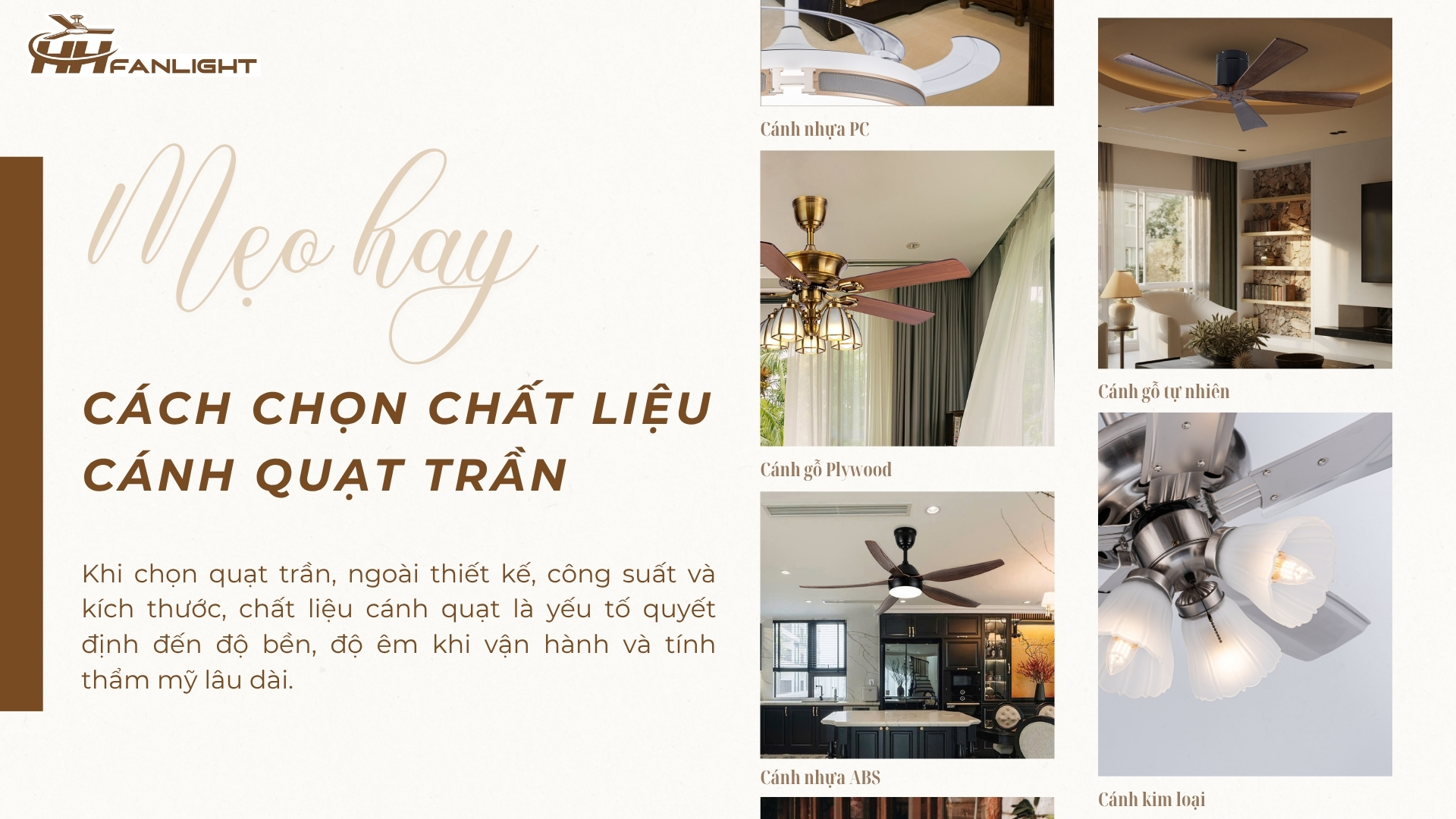 Hy vọng thông tin của bài viết sẽ giúp bạn chọn được chất liệu cánh quạt trần phù hợp cho không gian của mình.